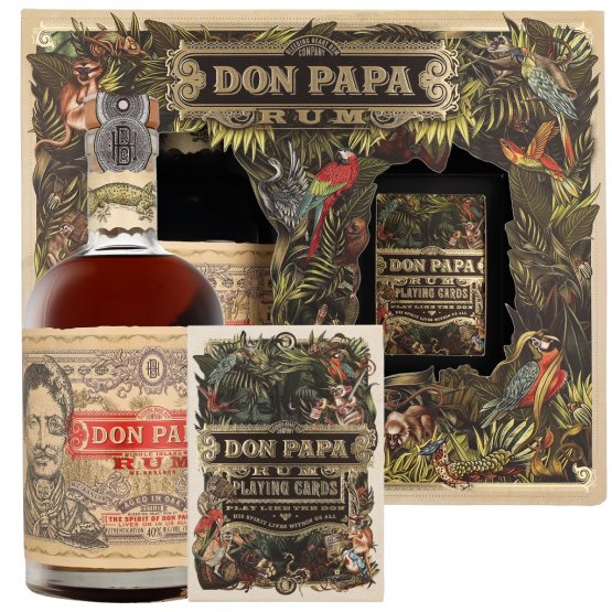 This special edition pairs a bottle of the iconic Don Papa 7 Year Old with a beautifully crafted deck of branded playing cards — a nod to the brand's playful spirit and storytelling tradition. Housed in a sleek, collectible box, this set is an invitation to unwind, enjoy, and share stories over smooth, tropical rum.