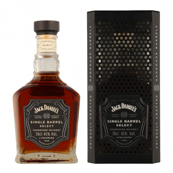 Jack Daniel's Single Barrel + Metal Whisky is an award-winning Tennessee whiskey from Moore County, TN. Distilled in small batches for superior flavor, this whiskey is filtered through 10 feet of sugar maple charcoal, creating a unique taste that is clean and smooth. The oak barrels used to age the whiskey are charred and hand-picked to provide a sweet, mellow flavor. Enjoy a robust whiskey with hints of oak, vanilla, and smoke.